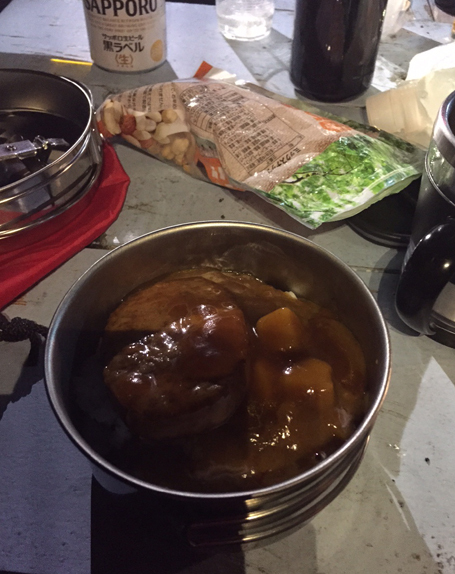 自宅で出したら手抜きだと思われそうですが、温かいご飯が食べられるなんて、この場ではとても贅沢なメニューです。