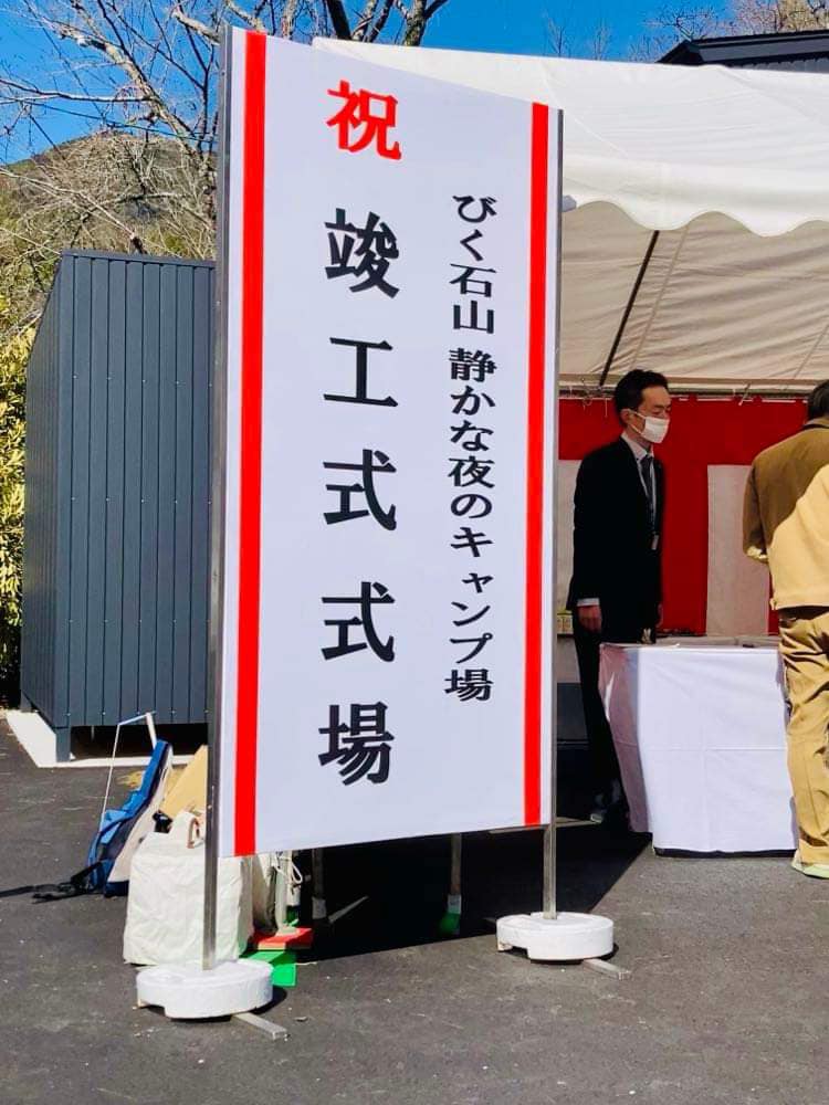 びく石山静かな夜のキャンプ場の竣工式が本日無事にとりおこなわれました。